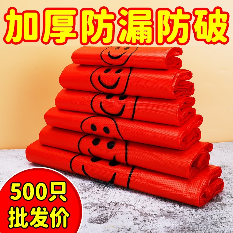 塑料袋批发红色笑脸袋食品袋外卖打包袋超市购物袋家用手提袋加厚