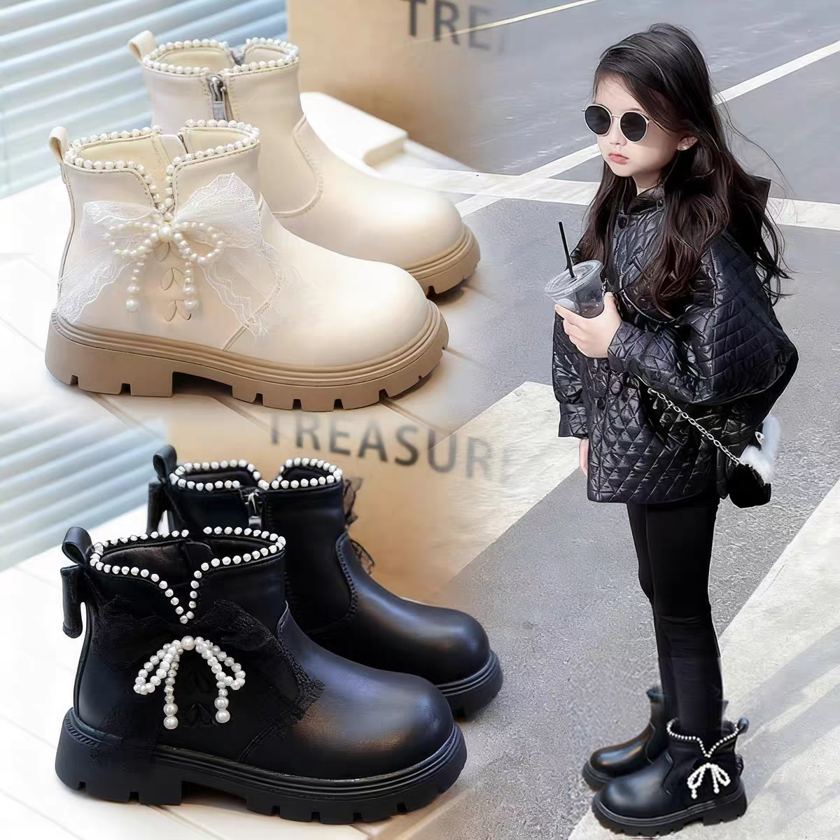 真皮女童靴子2025新款秋冬软底儿童马丁靴公主短靴女孩加绒小皮靴