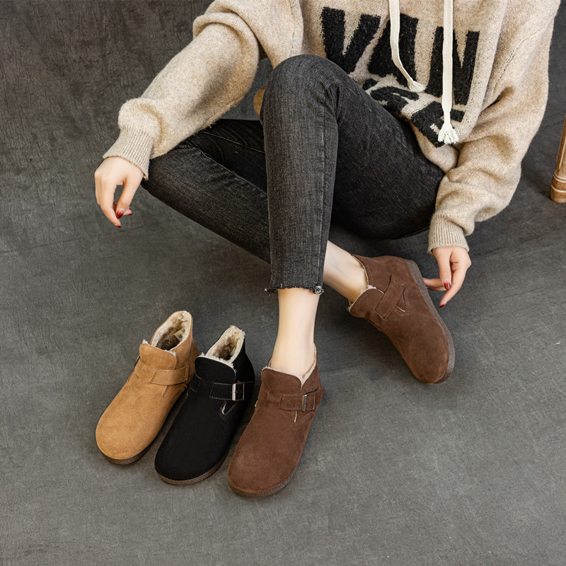 秋冬新款勃肯高帮女皮靴真皮复古加绒保暖文艺简约百搭气质女短靴