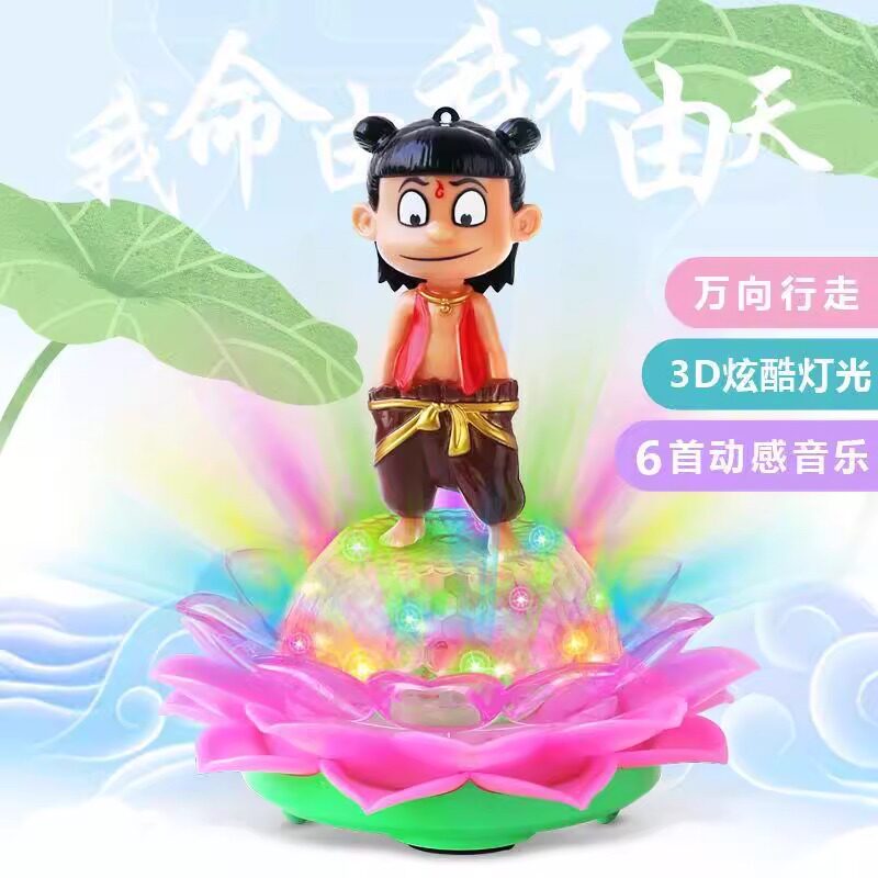 发光哪吒手提灯笼创意声光电动旋转莲花万向趣味轮摆地摊儿童玩具
