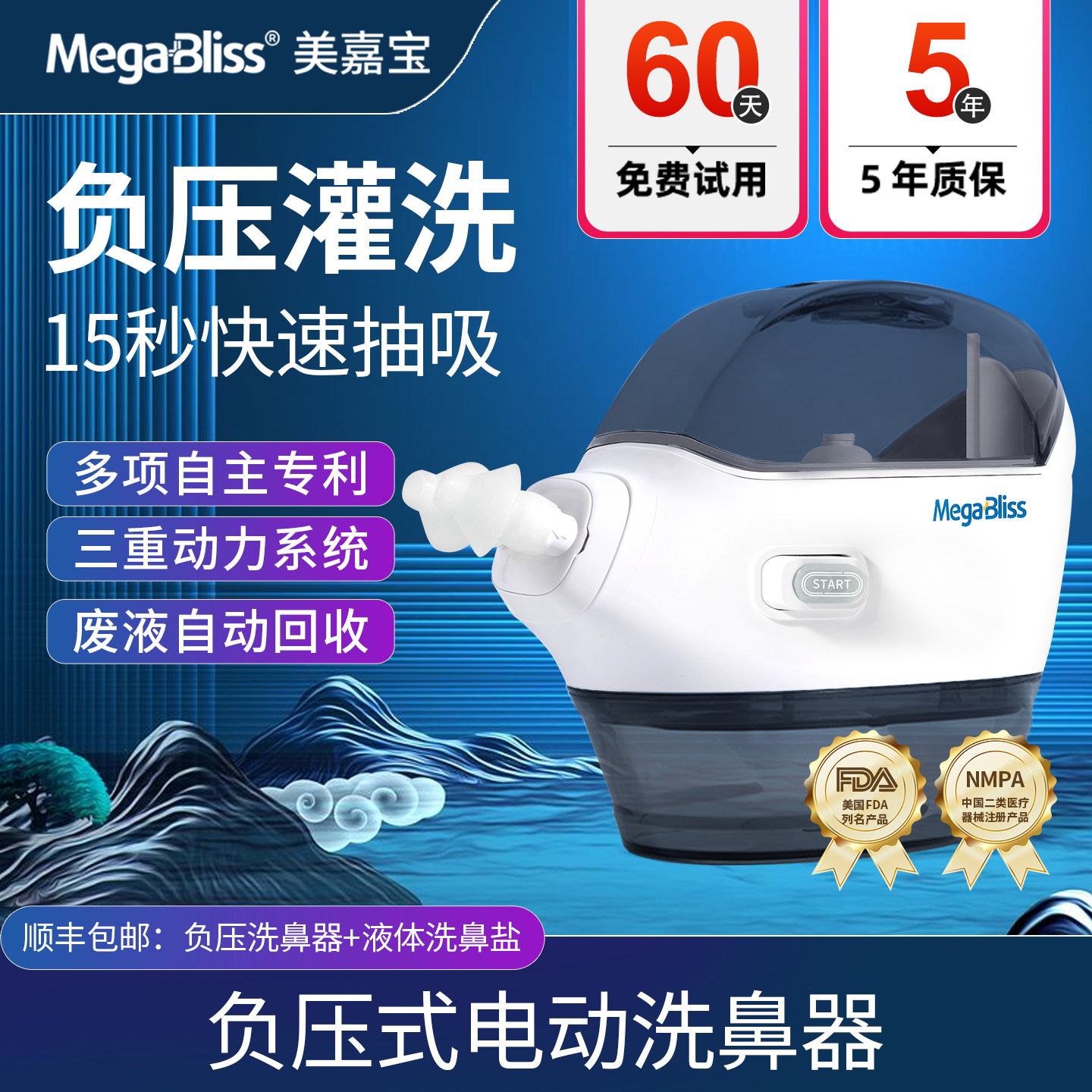 MegaBliss美嘉宝负压电动洗鼻器双头灌洗成人鼻炎鼻塞洗鼻吸鼻