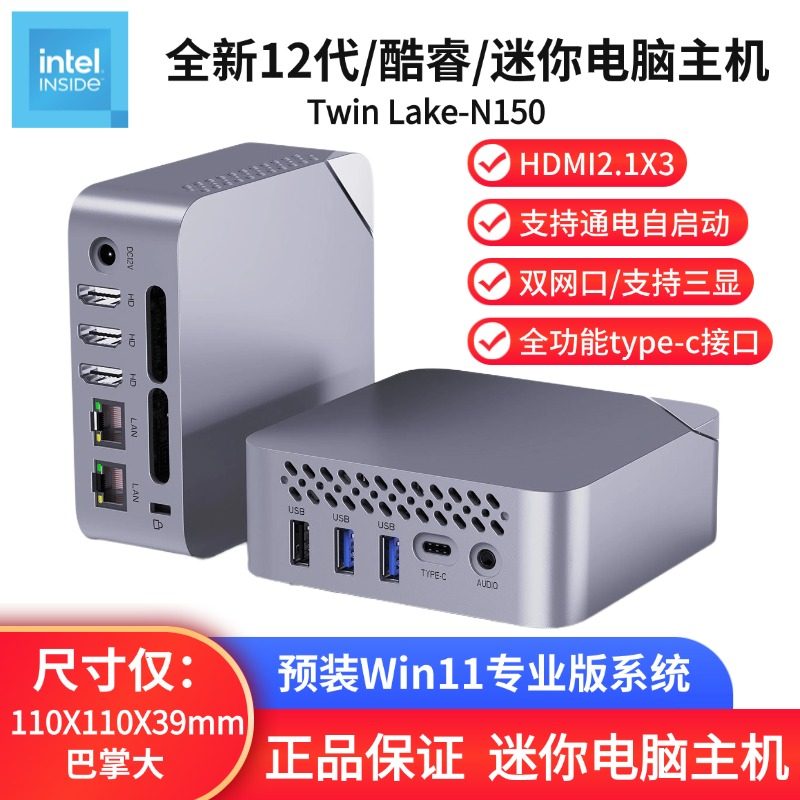 全新12代N150小型台式低功耗双网口软路由4K便携式Win11微型主机