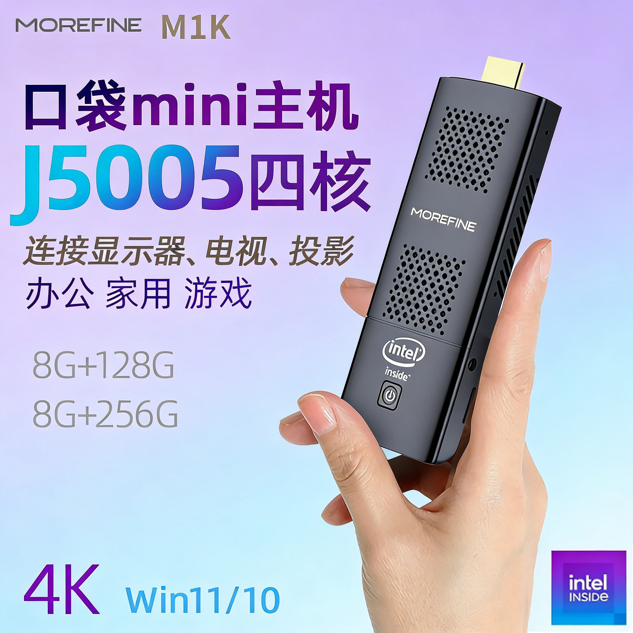 摩方J5005口袋迷你主机win11微型电脑棒4K办公家用游戏便携小台机