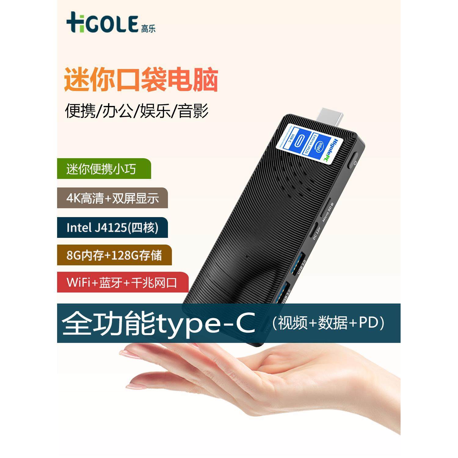 嗨高乐 迷你主机win11微型小电脑棒4K电影办公家用口袋便携minipc