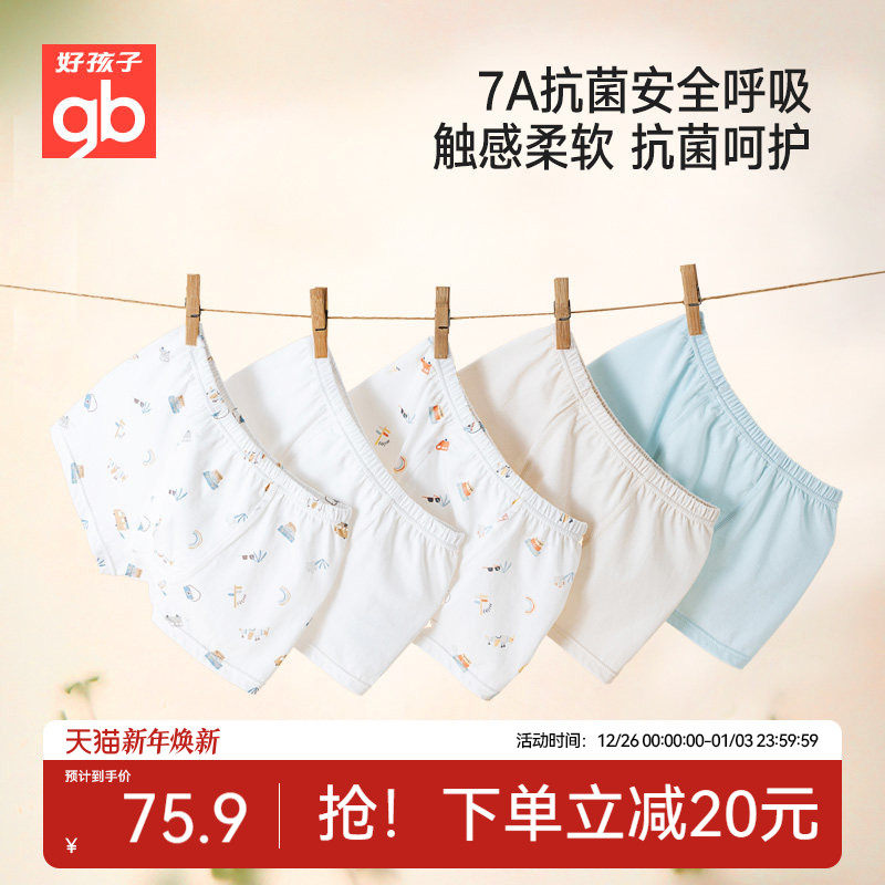 Goodbaby好孩子精梳棉内裤5条装男女儿童内裤全棉7A抗菌平角短裤