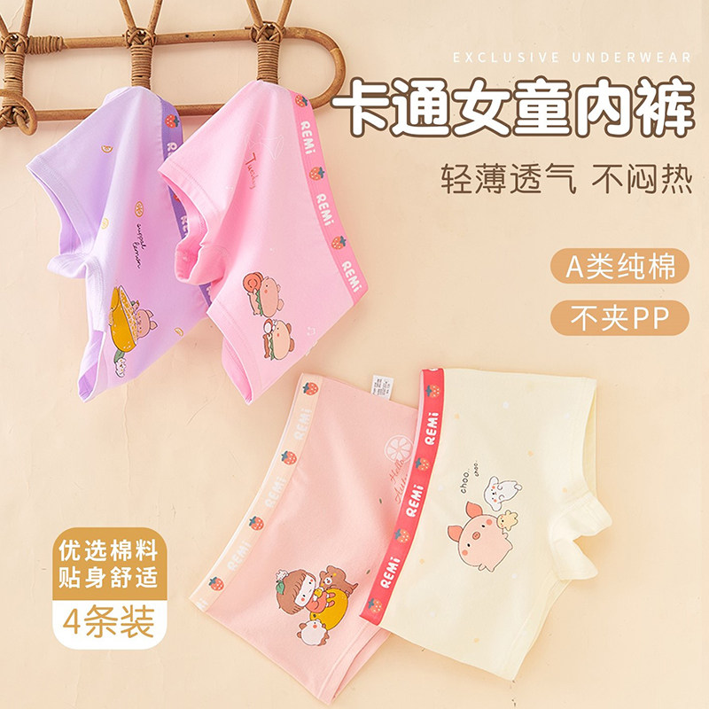 爆款A棉儿童内裤女纯棉平角女童宝宝抗菌底档小女孩四角不夹屁屁