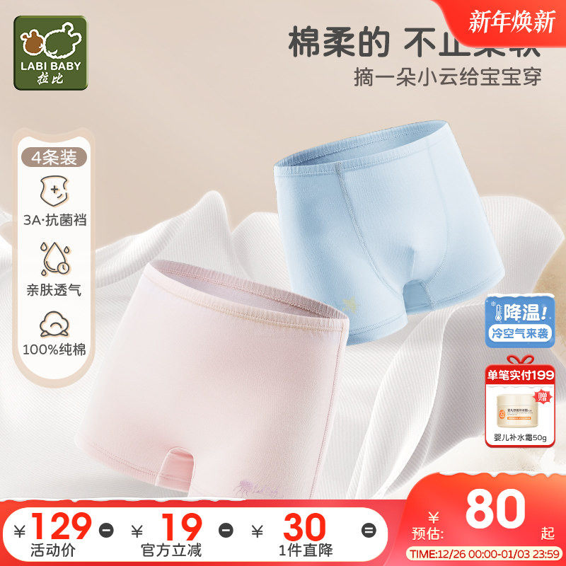 拉比童装2024新品童男女儿童内裤4条装三角四角纯棉内裤3A抑菌裆