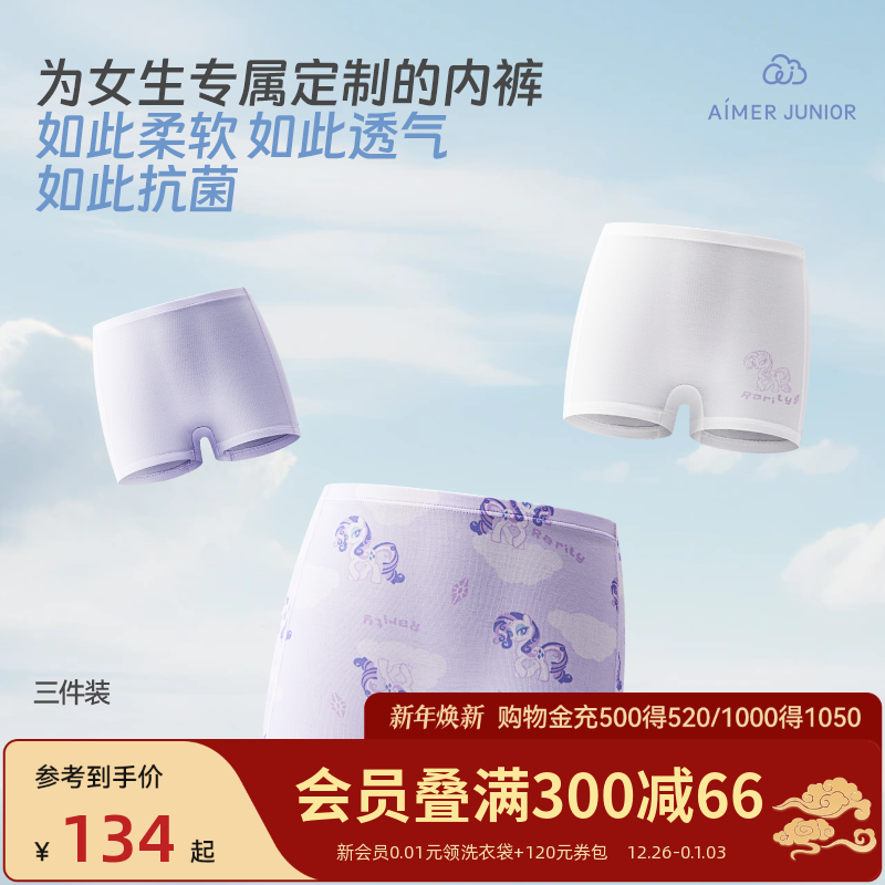 [7A抗菌]英氏儿童女童内裤纯棉女宝宝男童四角打底裤中大童不夹PP