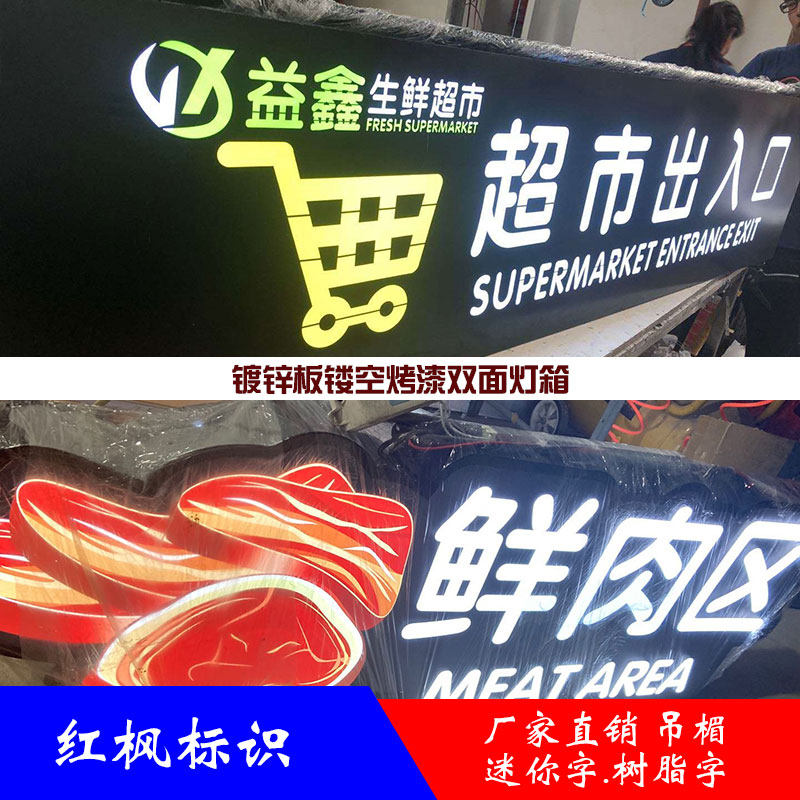 超市树脂发光字迷你字区域指示牌吊牌灯箱悬挂金属镂空收银台灯箱