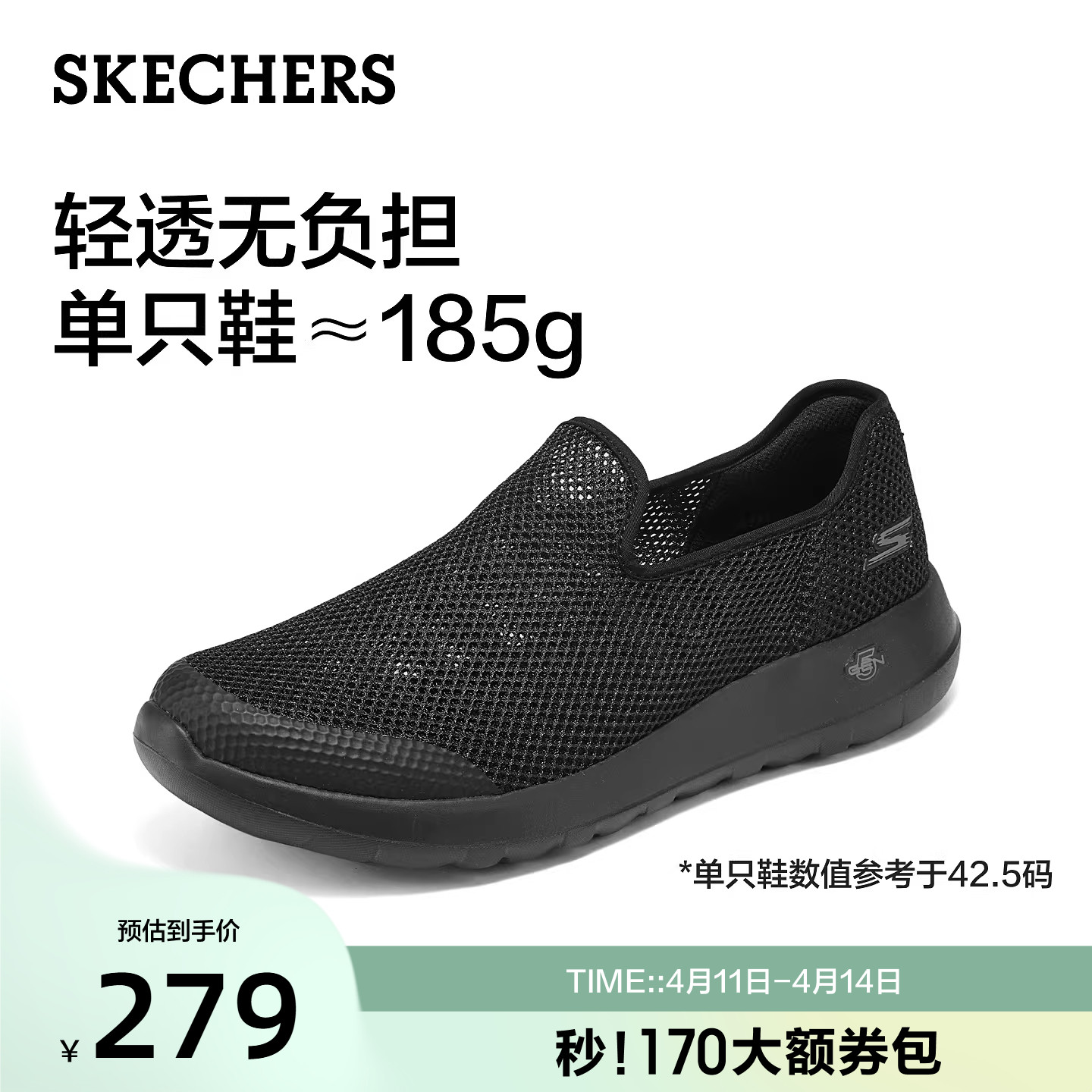 斯凯奇男女健步鞋子一脚蹬易穿脱女舒适透气老人鞋运动鞋网面软底