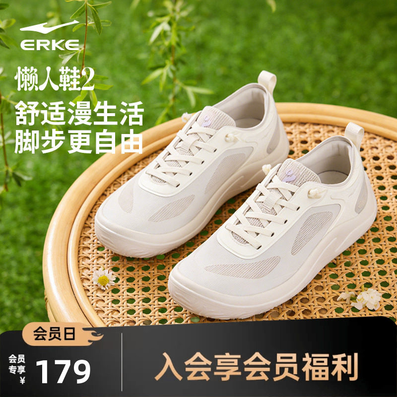 鸿星尔克运动鞋懒人鞋一脚蹬网面透气软底减震女鞋夏季宽楦休闲鞋