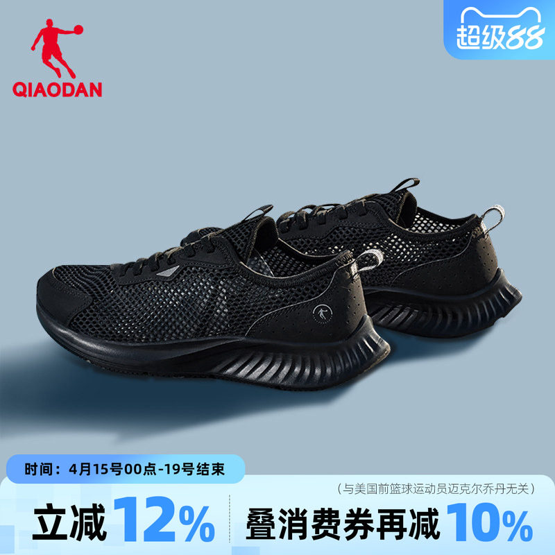 乔丹男鞋运动鞋男2026夏季网面透气镂空网鞋轻便一脚蹬黑色跑步鞋