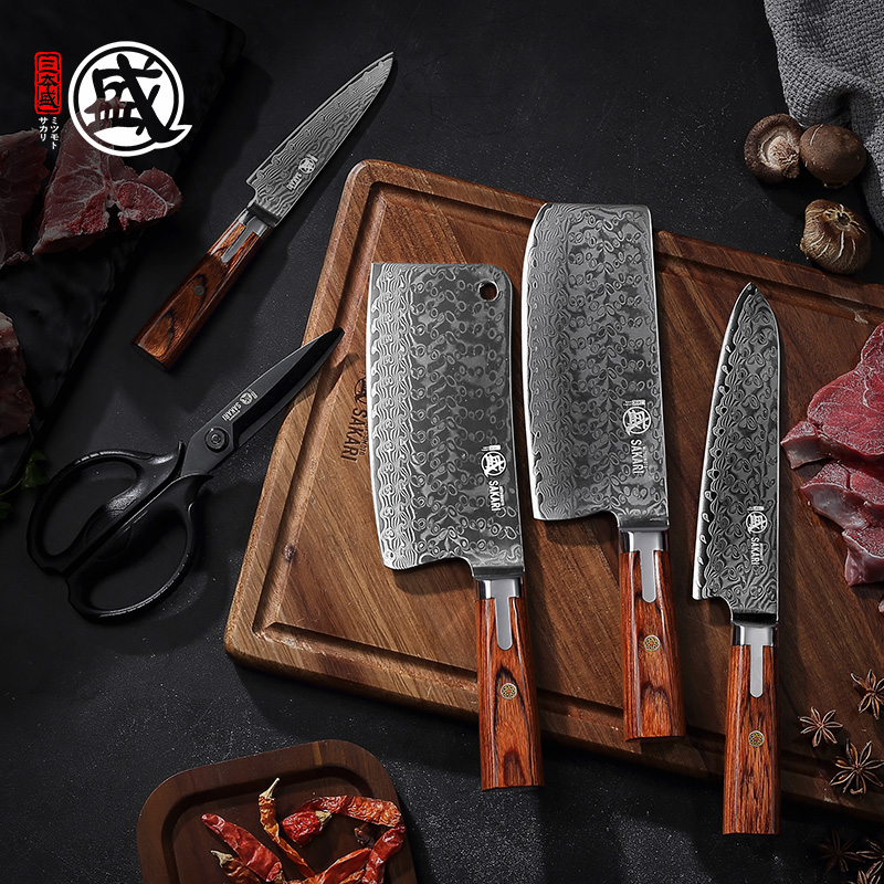 日本三本盛大马士革粉末钢菜刀切片砍骨进口高端全套厨房刀具家用