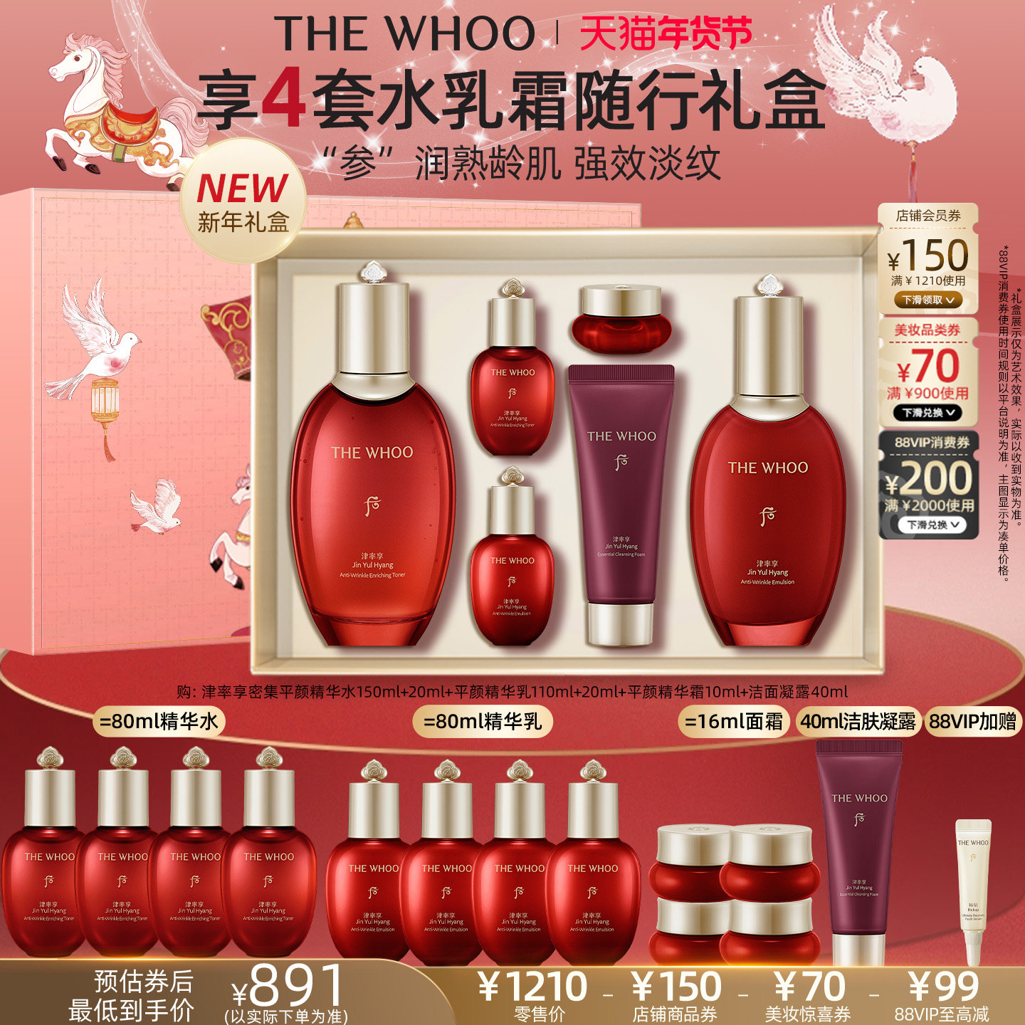 whoo后津率享水乳霜7件套盒抗皱滋润淡化细纹紧致送妈妈护肤品