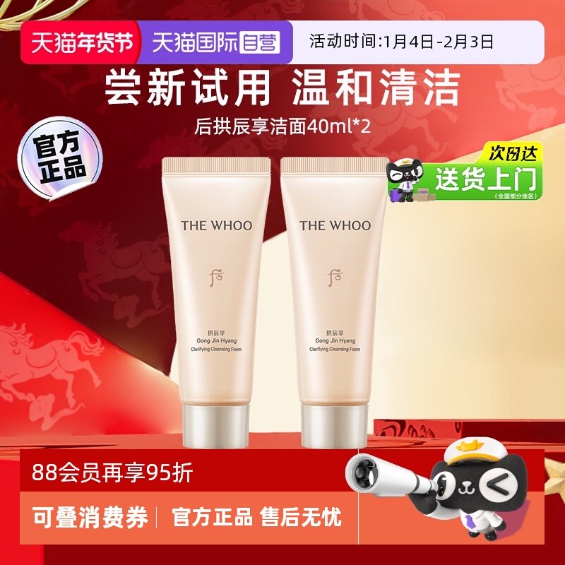 【天猫U先】Whoo后拱辰享净澈洁面膏40ml*2 非卖品 保湿清洁