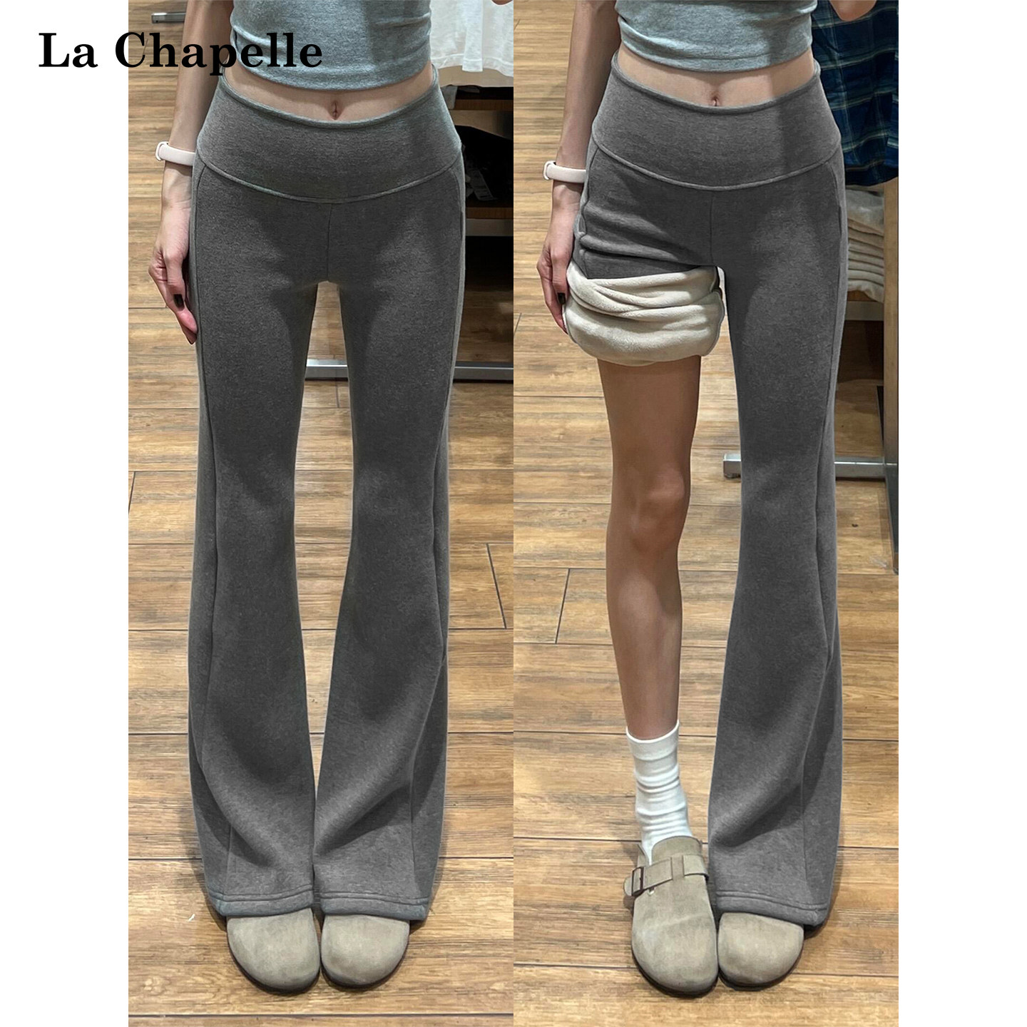 拉夏贝尔加绒加厚微喇裤女秋冬新款高腰显瘦卫裤小个子瑜伽喇叭裤