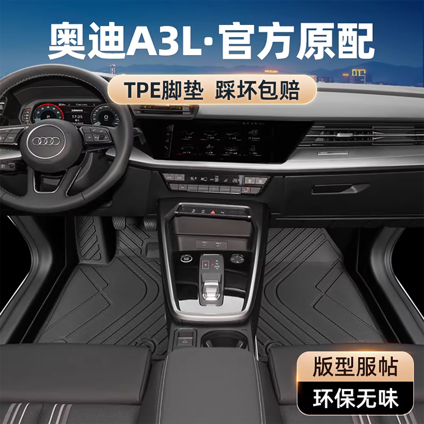 奥迪a3脚垫全包围两厢a3l三厢专用2024款汽车原厂17主驾驶tpe丝圈