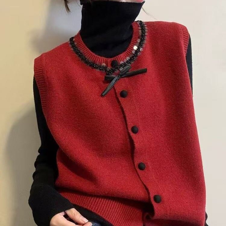 重工亮片设计感针织开衫马甲两件套女欧洲站2025冬装新款欧货女装