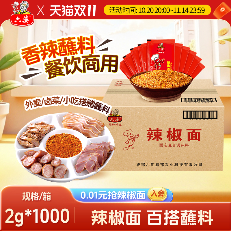 成都六婆辣椒面2g*1000袋整箱六婆牌蘸料干碟火锅串串香蘸碟包邮