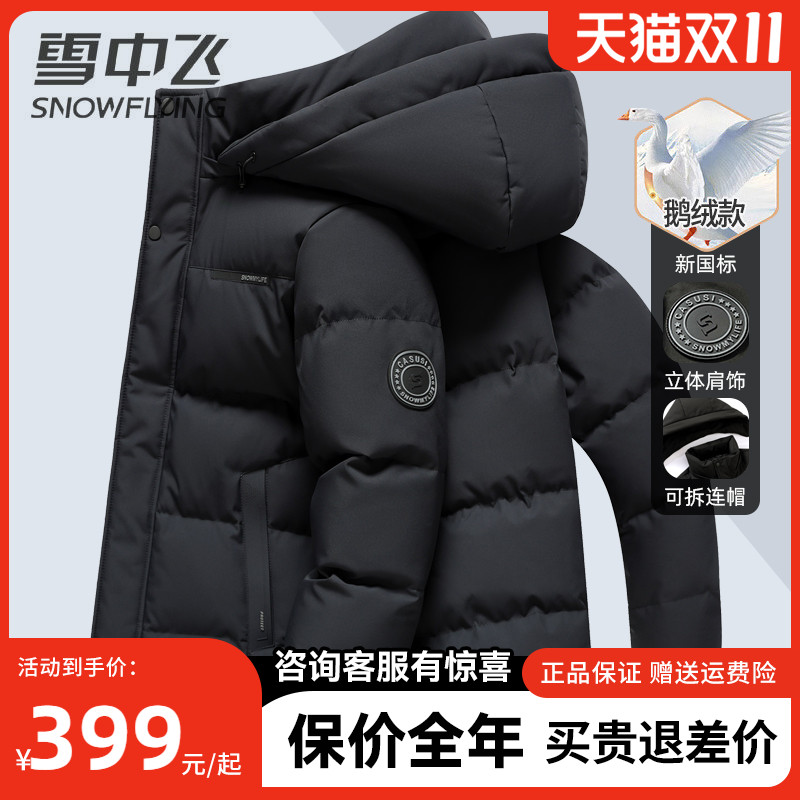 雪中飞男士羽绒服短款2025冬季新款加厚鹅绒服中老年爸爸冬装外套