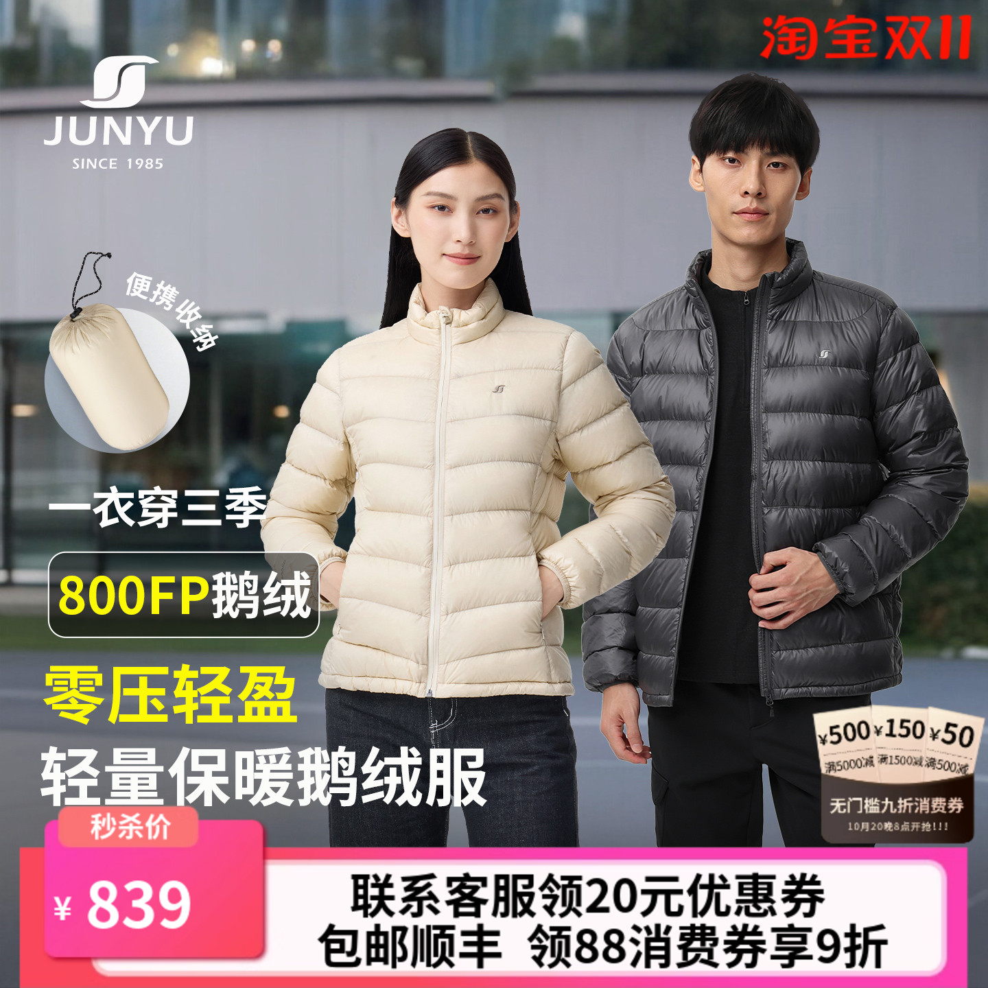 [黑标]君羽户外800蓬鹅绒服男短款轻薄圆领内胆鹅绒服女短款52105