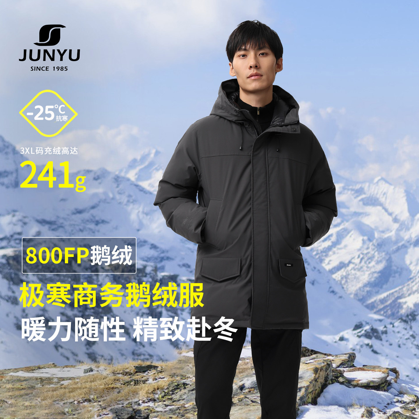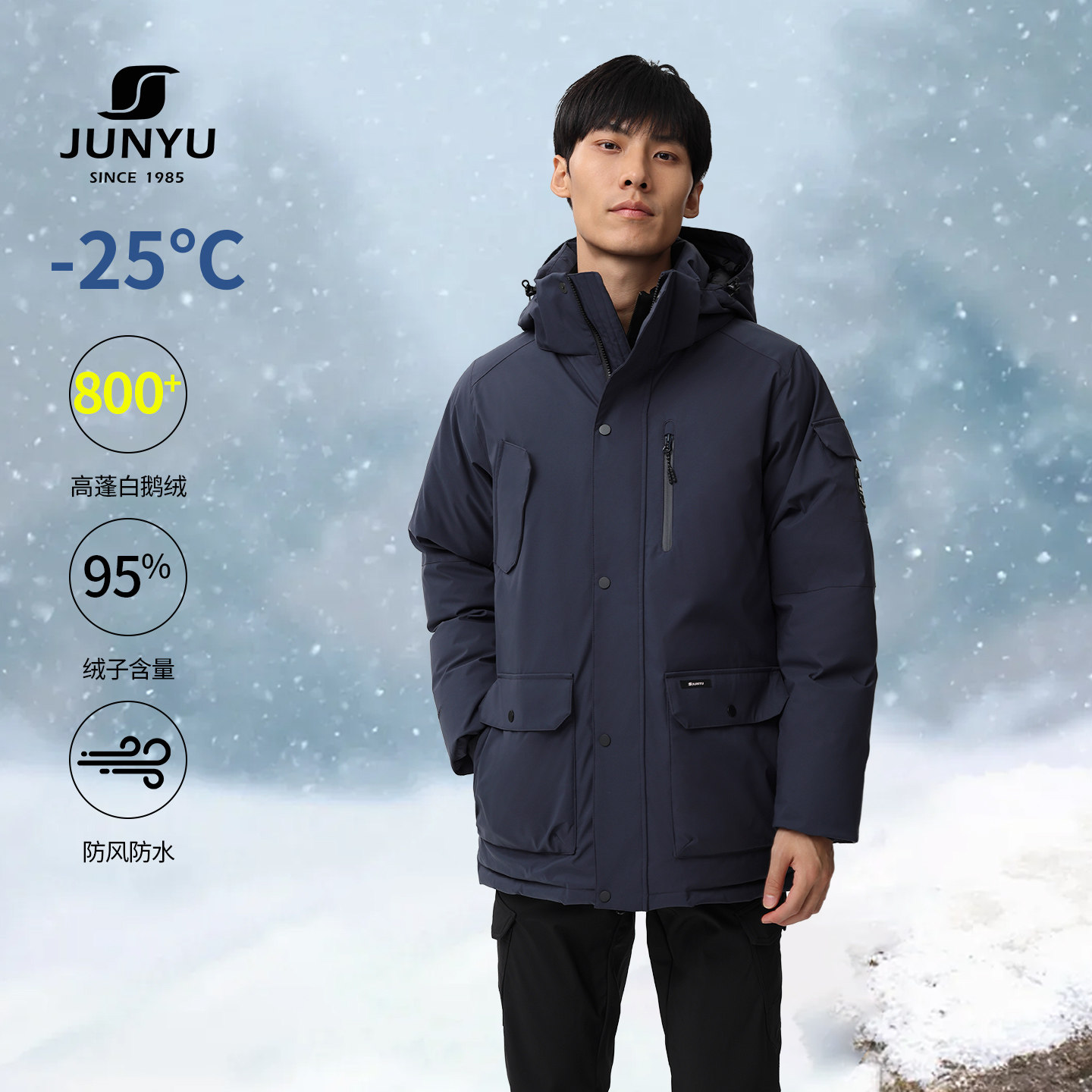 【800蓬白鹅绒】君羽户外羽绒服男中长款冬季极寒鹅绒服男工装159