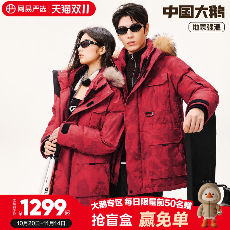 网易严选中国大鹅羽绒服男2025新款情侣户外滑雪鹅绒服保暖户外服