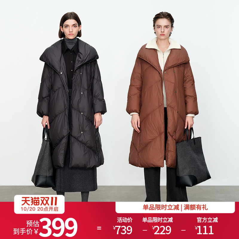 【特惠】君羽800蓬羽绒服女过膝长款秋冬轻量化立领鹅绒服D52074