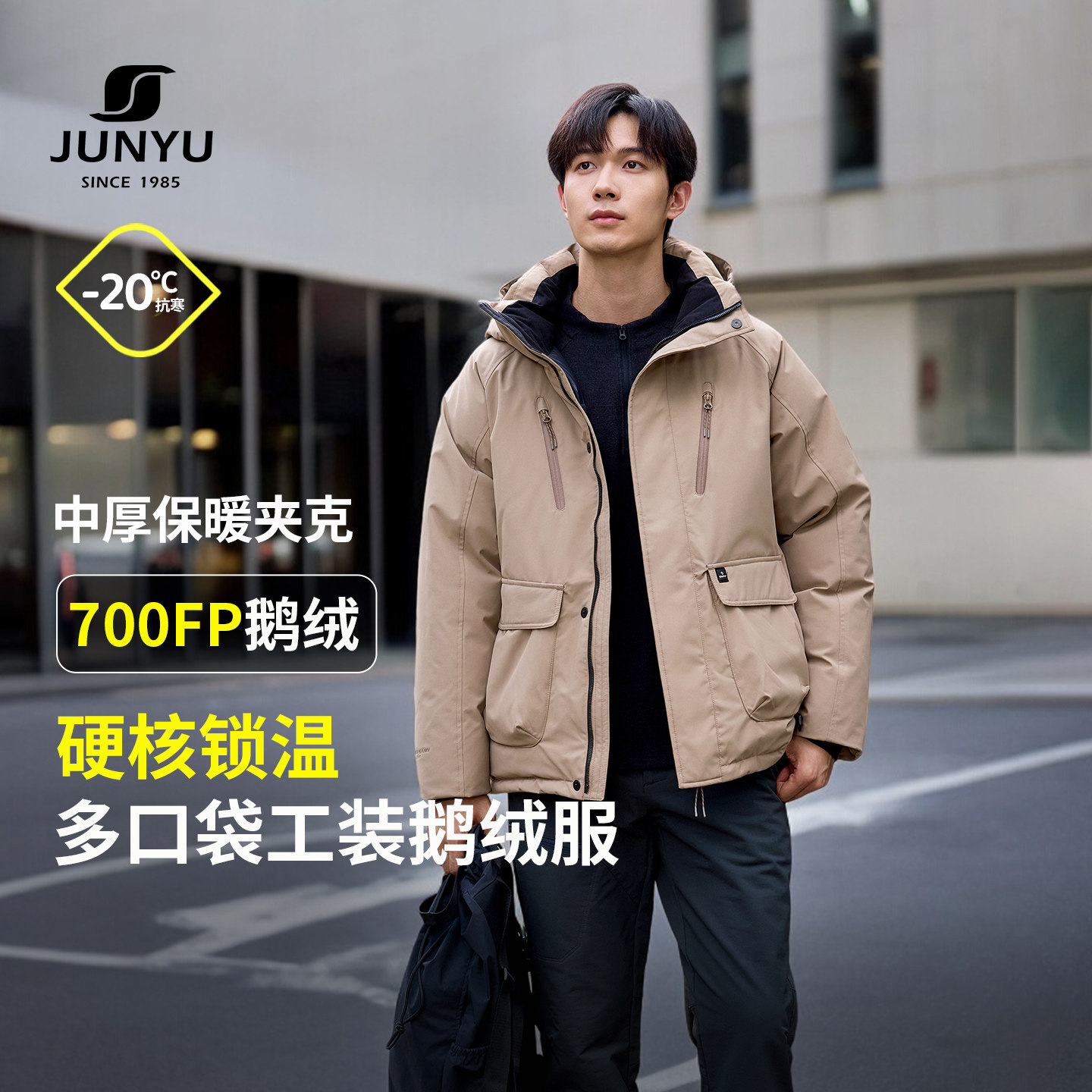 君羽户外羽绒服男短款工装冬季加厚保暖700蓬极寒鹅绒服男外套083