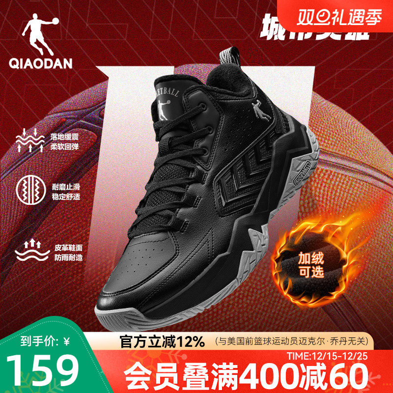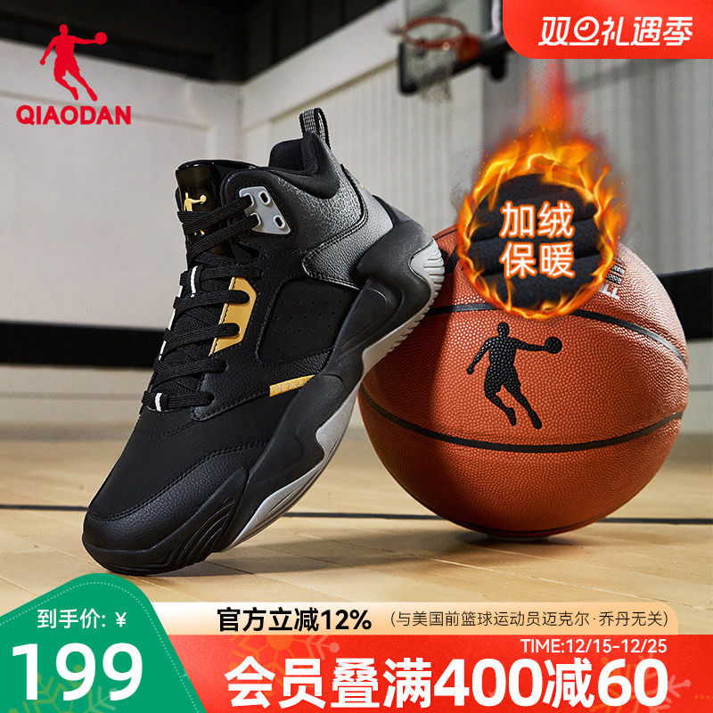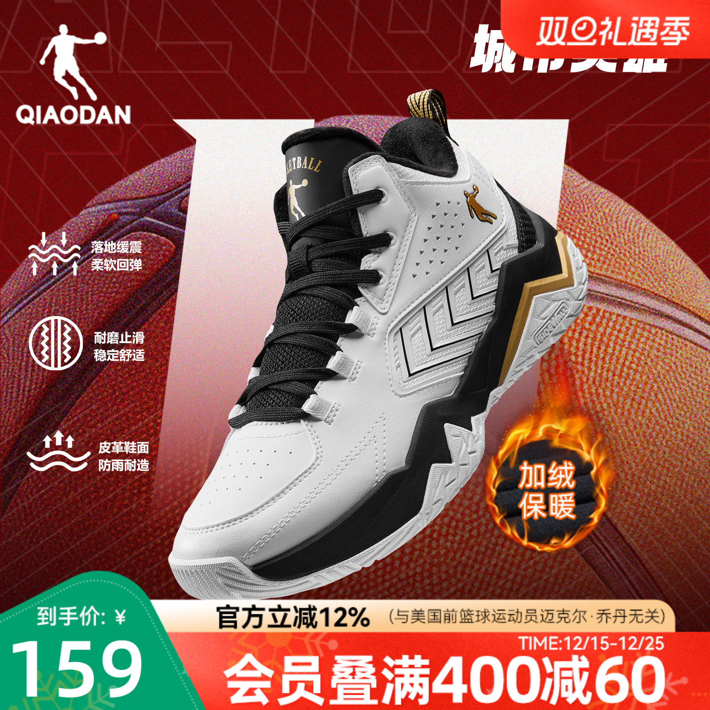 乔丹加绒篮球鞋棉鞋高帮男冬季新款青少年保暖皮面运动鞋城市英雄
