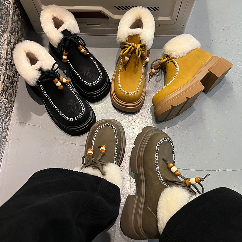 - 皮毛一体厚底雪地靴女