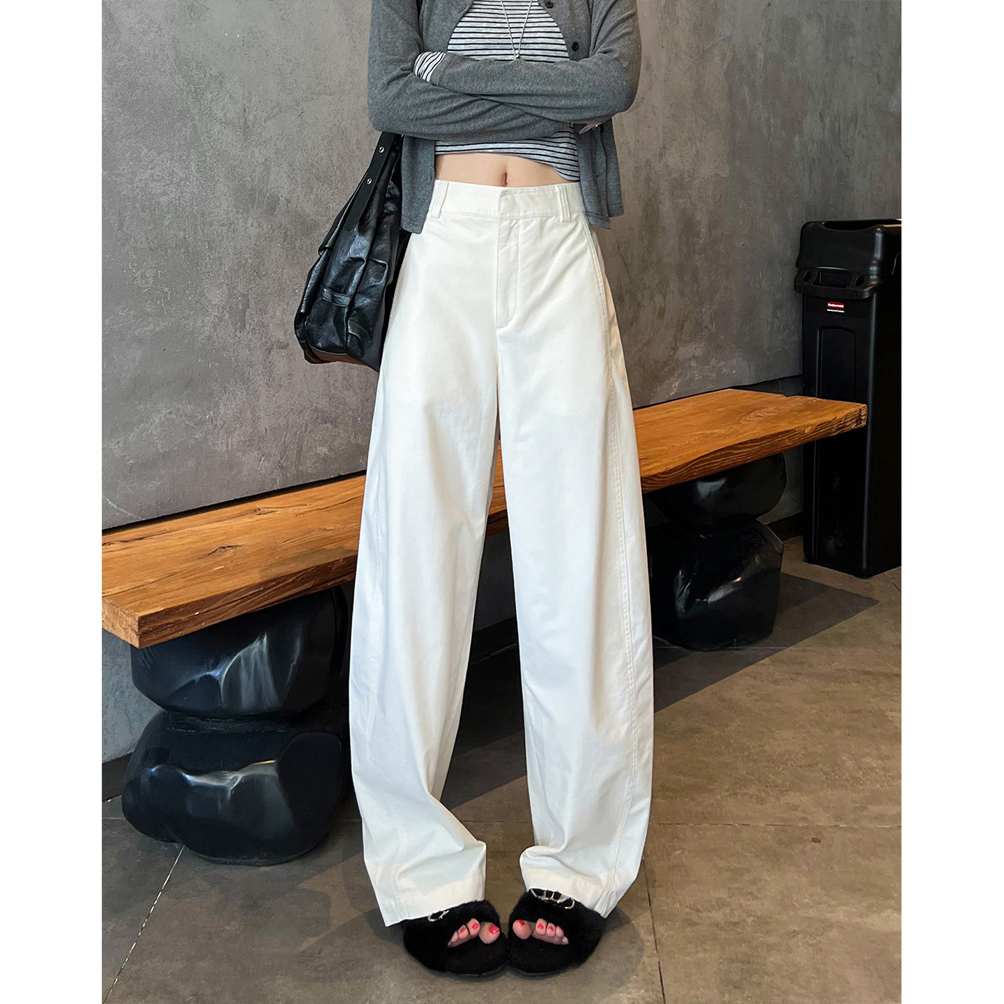 白色窄版裤子女春秋拖地高级垂感阔腿裤小个子宽松直筒西装裤夏潮
