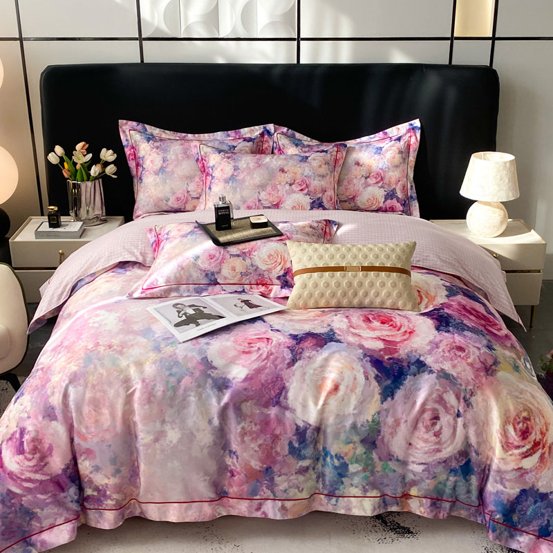 150支蚕丝四件套刺绣贡缎丝滑婚庆1.8m床品套件四季款活性印染