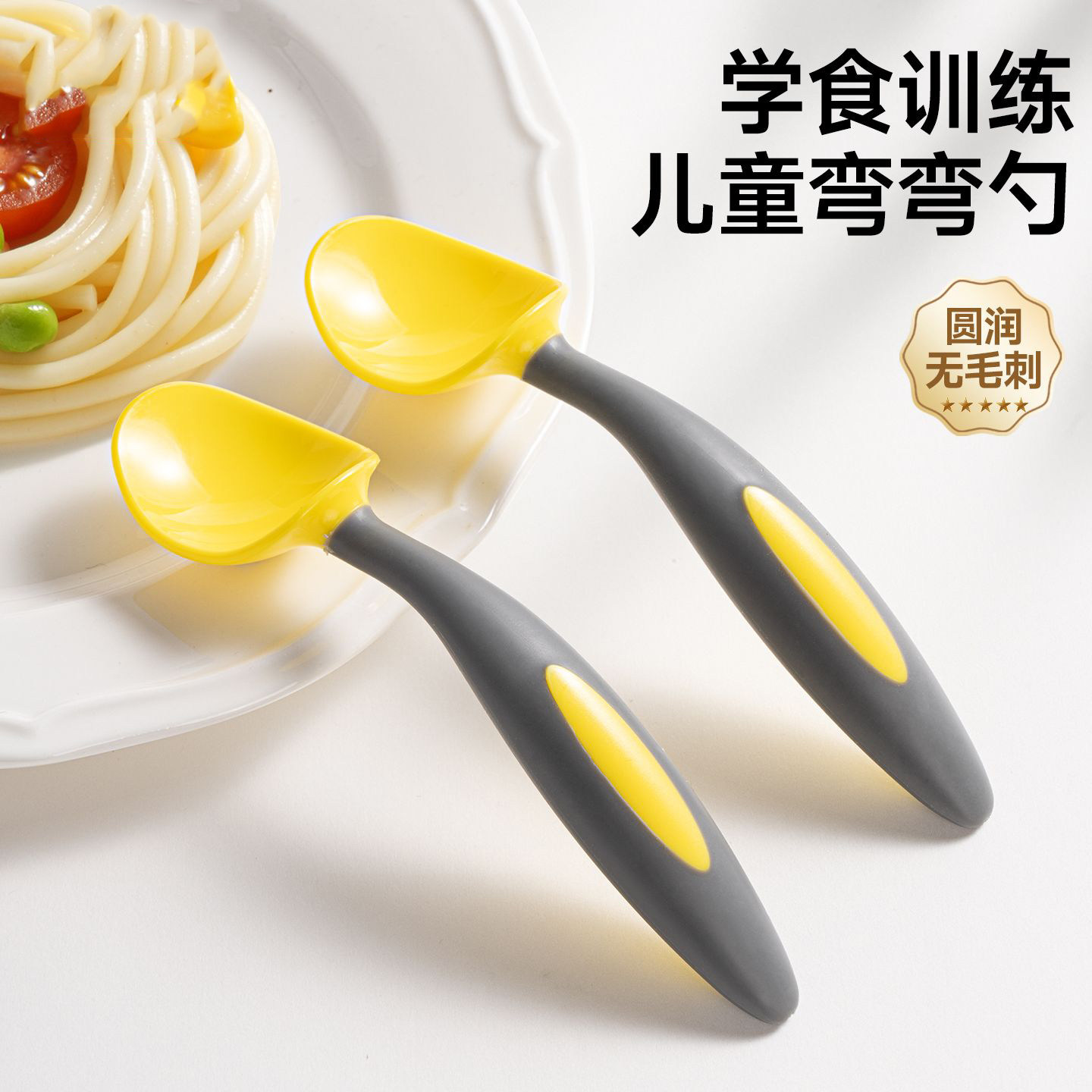婴儿勺子宝宝自主进食学吃饭训练专用新生幼儿软弯头勺辅食餐具碗
