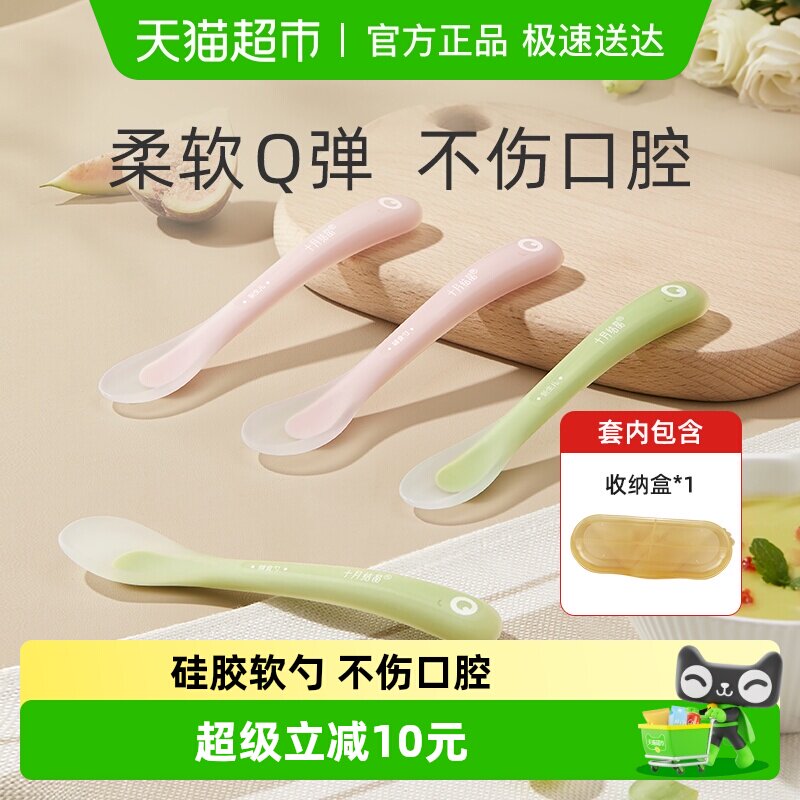 十月结晶婴儿勺子宝宝硅胶软勺新生儿喂水小勺子儿童餐具辅食软头