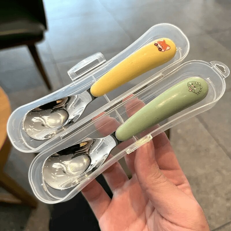 婴幼儿童不锈钢便携带图案元宝勺宝宝勺子婴儿勺子儿童勺子餐具盒