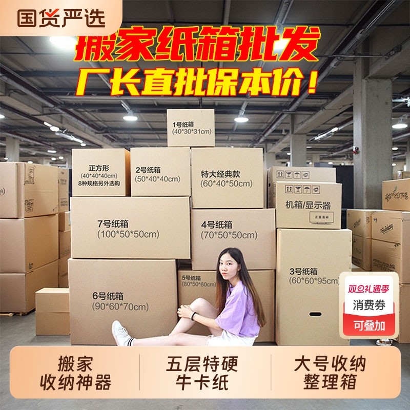 搬家纸箱加厚特硬特大号瓦楞搬家打包家用快递箱批发包装纸壳箱子