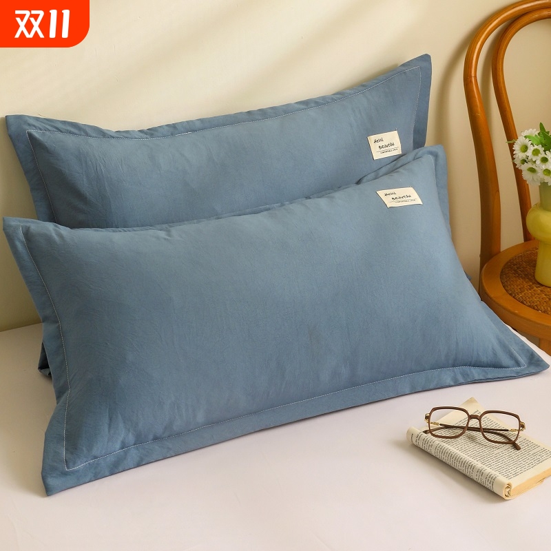 纯色水洗棉枕套纯棉全棉成人枕头套一对家用40x60纯色枕芯内胆套
