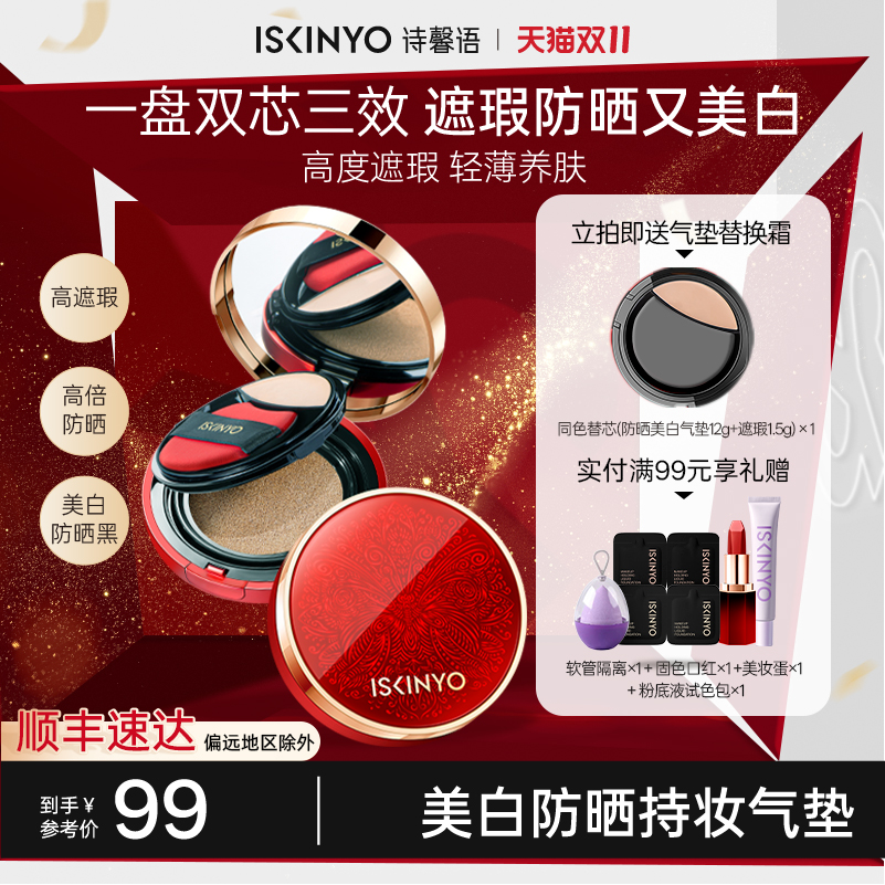 诗馨语美白防晒双层气垫遮瑕保湿持久隔离粉饼二合一粉底cc霜干皮