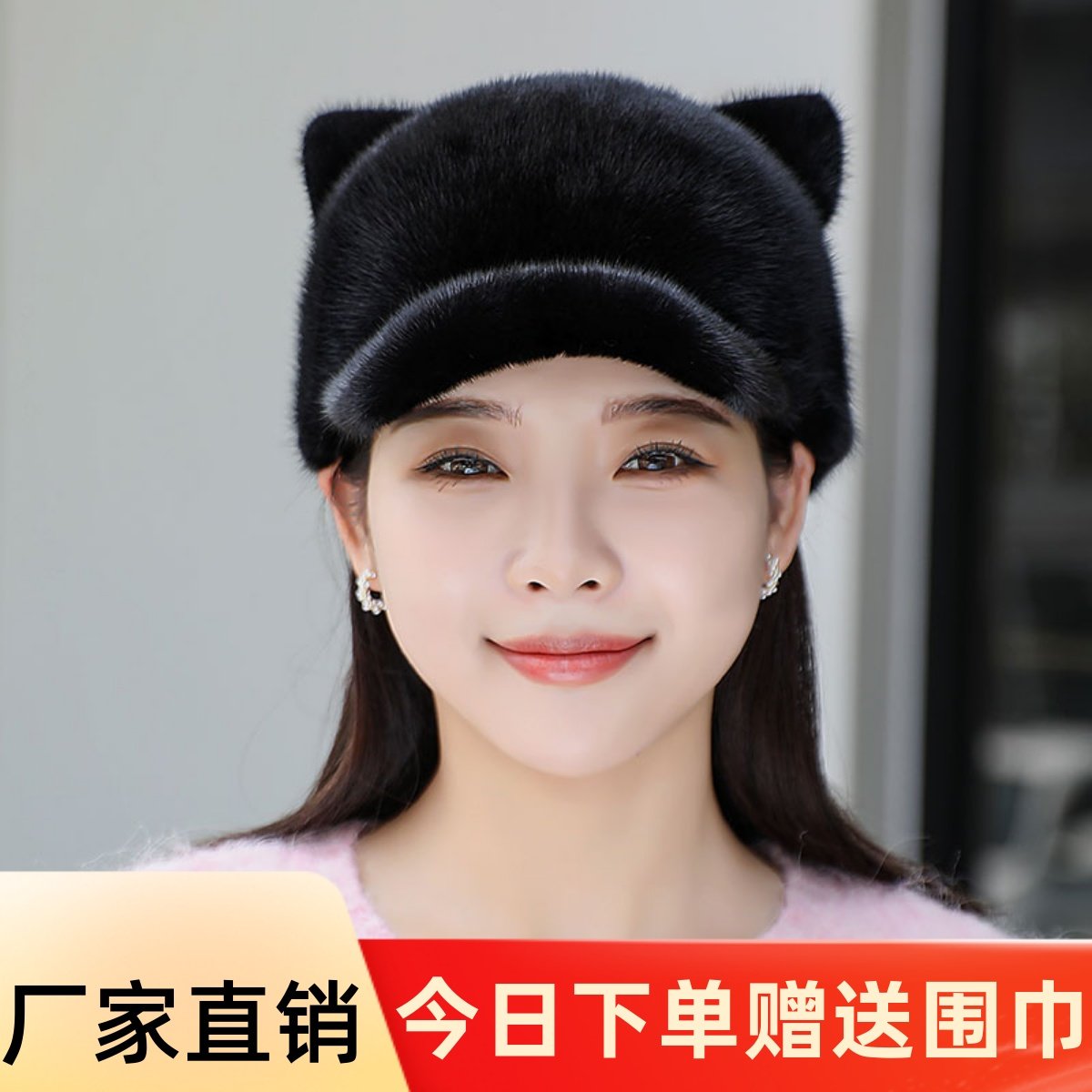 水貂帽子女秋冬新款整貂女帽时尚皮草女帽护耳朵帽水貂棒球帽加厚