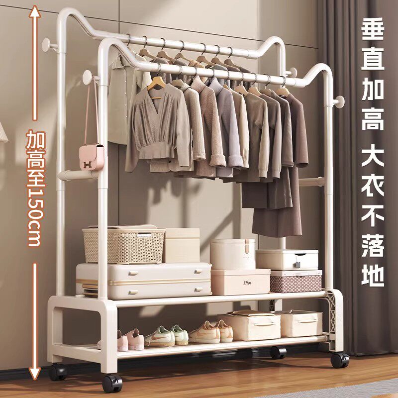 奶油风落地卧室挂衣架网红可移动带轮家用简易衣架阳台晾衣帽架子