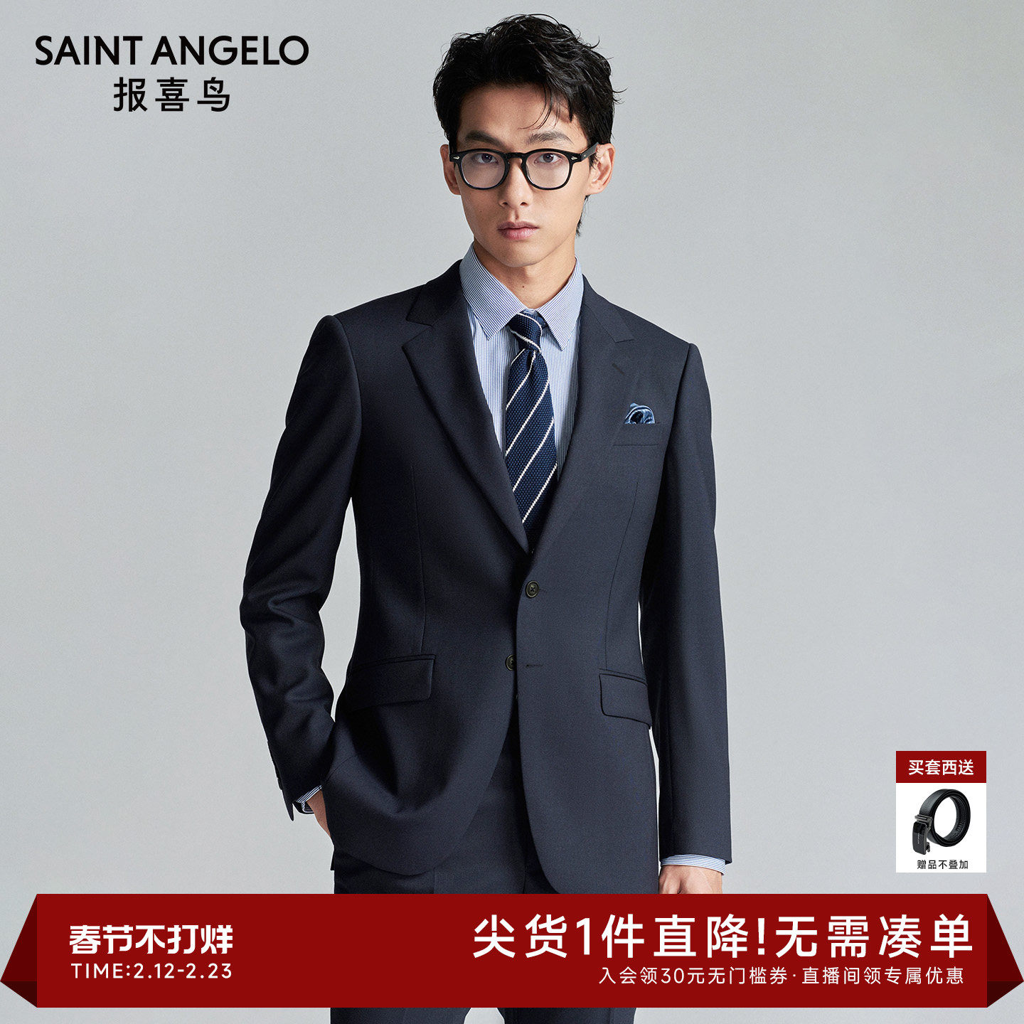 【澳洲羊毛】报喜鸟新款男士商务正装订婚西服结婚西装上衣西裤男