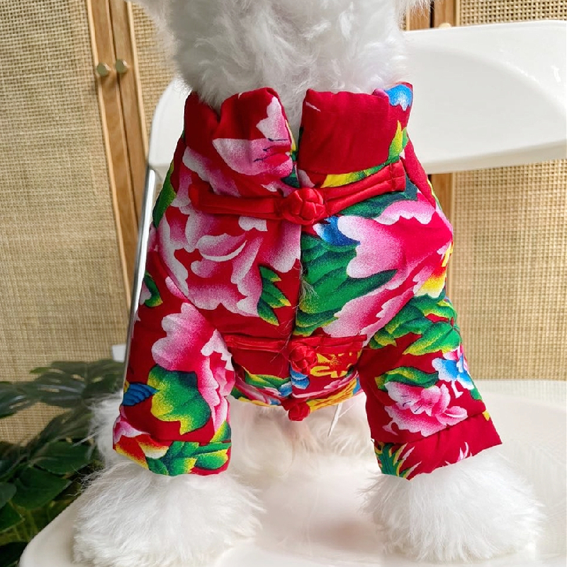 结婚喜庆节日中国民族风棉衣宠物小狗狗猫咪贵宾比熊泰迪衣服秋冬