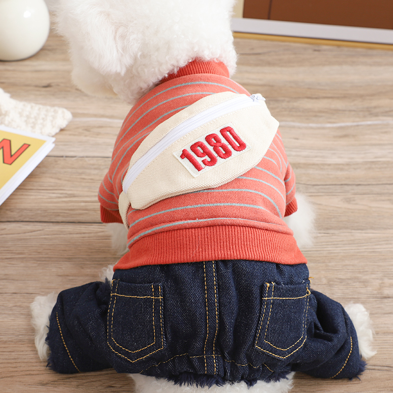 斜跨包狗狗四脚衣冬装宠物小型犬比熊雪纳瑞博美泰迪衣服秋冬装厚