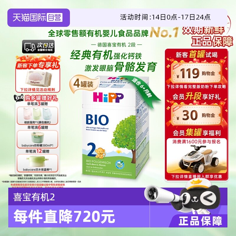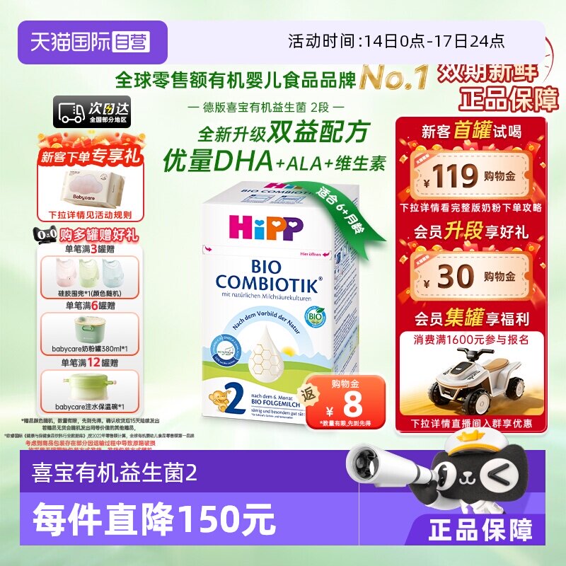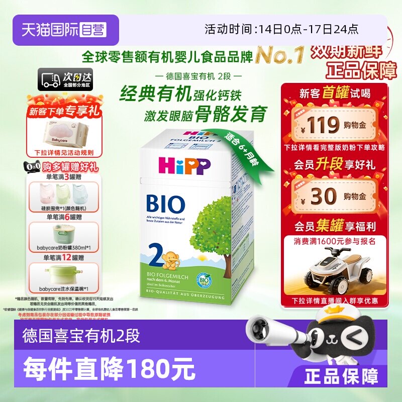 HiPP喜宝德国经典有机bio婴幼儿进口宝宝新生配方牛奶粉2段