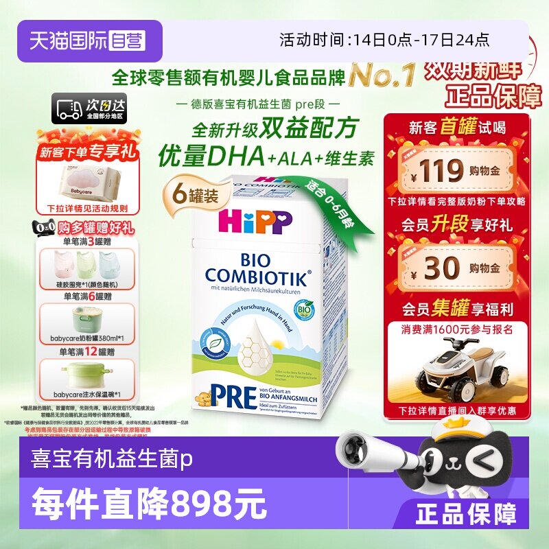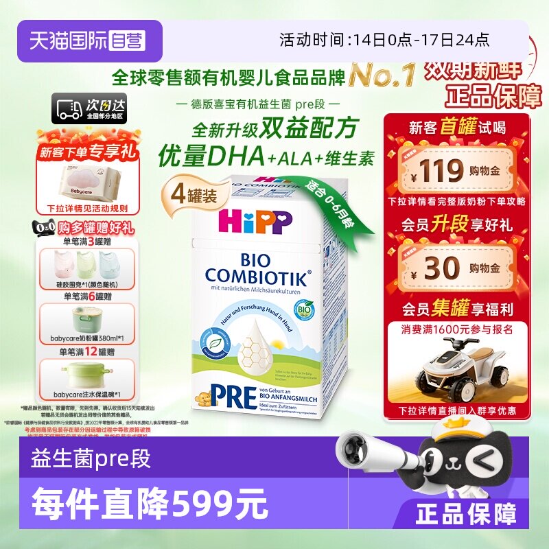 【旗舰】HiPP喜宝德国珍宝有机益生菌叶酸婴幼儿配方奶粉Pre段