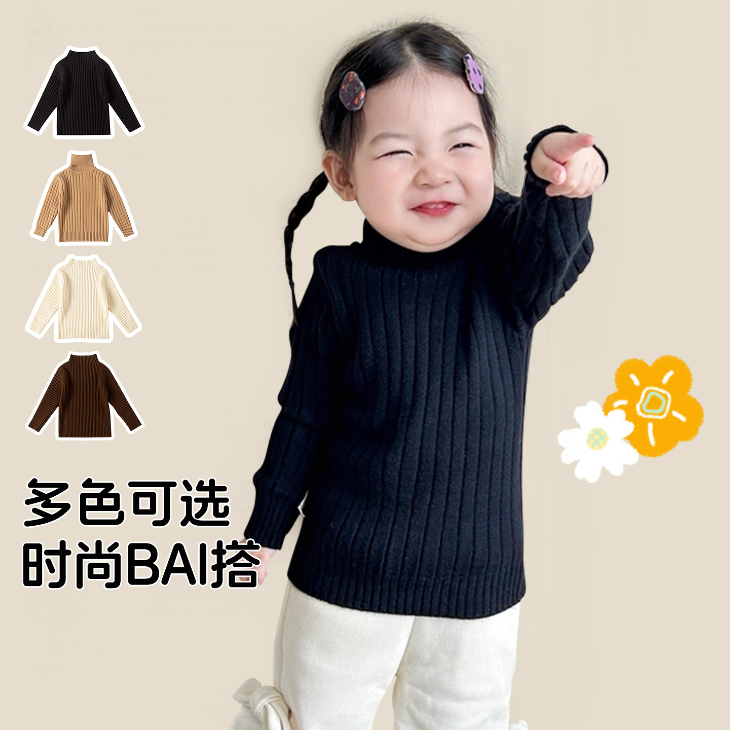 儿童毛衣洋气2024秋冬韩版半高领纯色内搭男女宝宝套头打底针织衫
