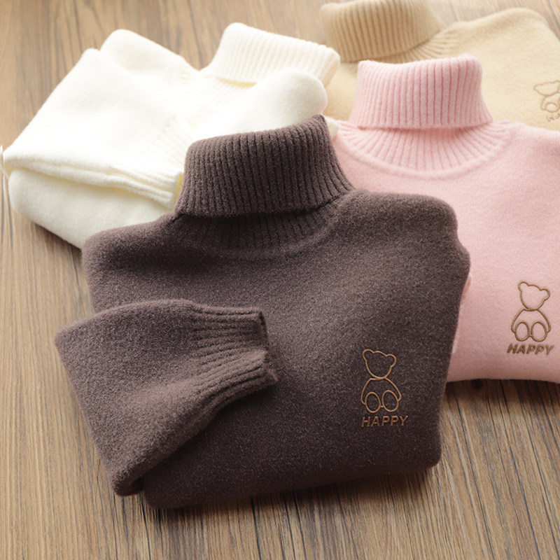 女童毛衣套头韩版男孩中大童秋冬加厚高领打底针织衫儿童纯色毛衣
