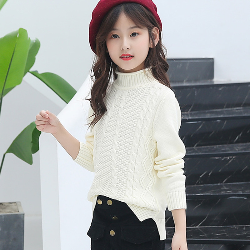 女童拉链半高领毛衣秋冬新款韩版中大童麻花加厚套头针织衫内搭潮