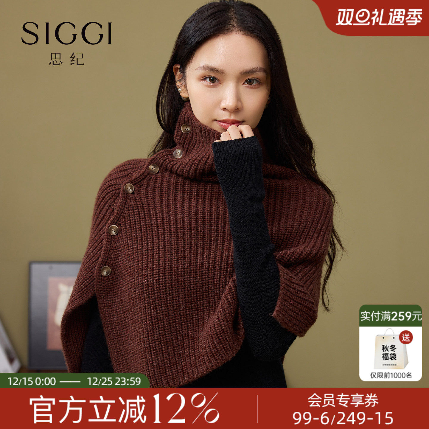 siggi 羊毛披肩女秋冬假领韩版套头保暖护颈外搭开叉高领毛衣围脖